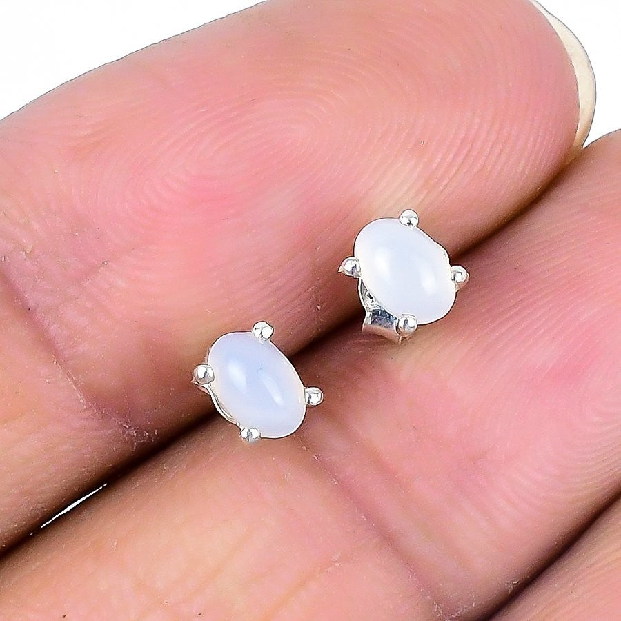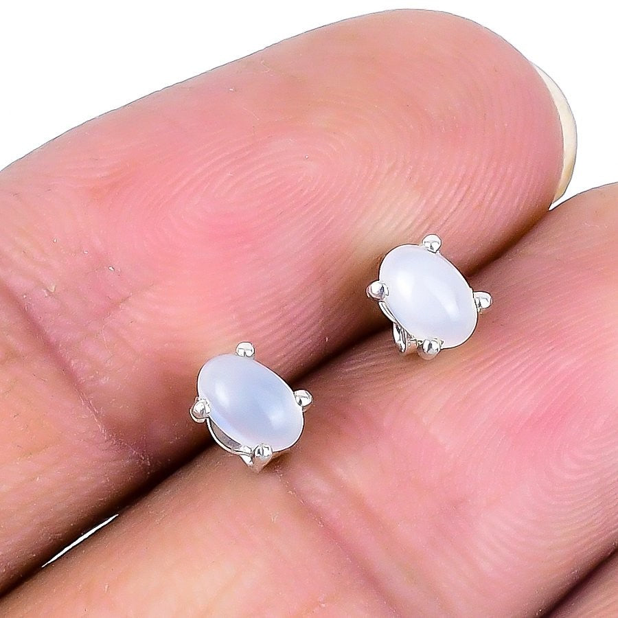 Rainbow Moonstone Stone Solid Sterling Silver Mother Stud Post Earrings Jewelry