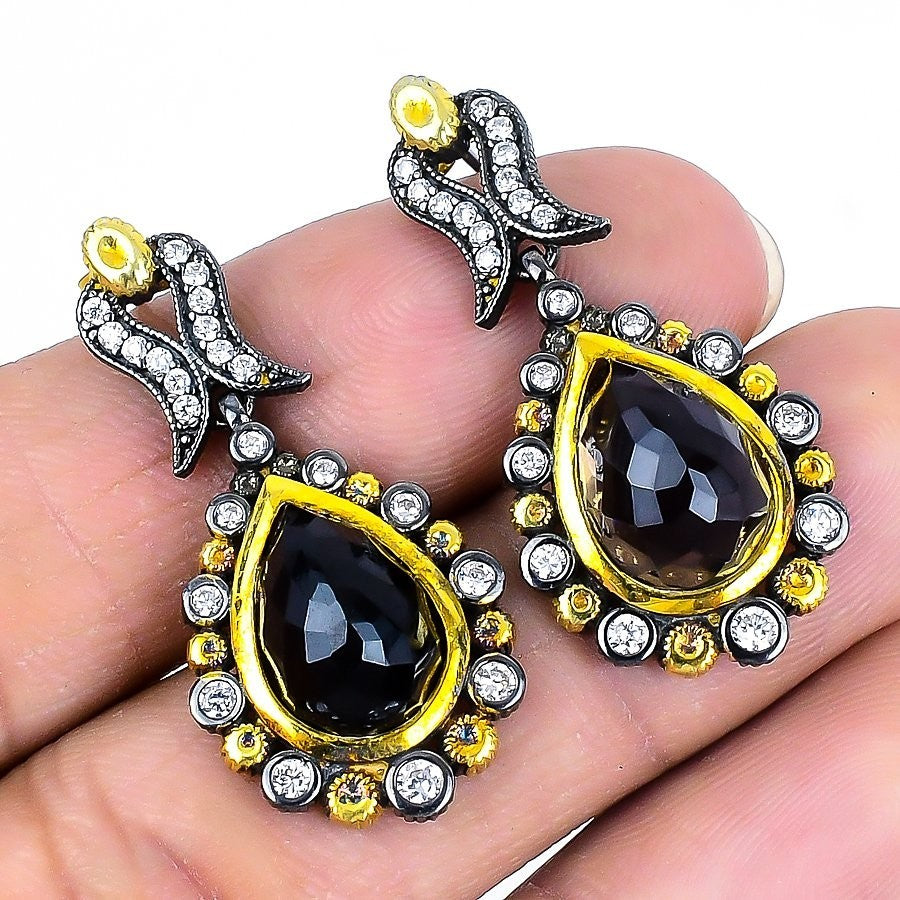 Smoky Topaz Stone Boho Dangle Drop Daughter Earrings Jewelry 925 Sterling Silver