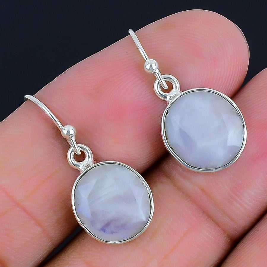 Crown Chakra Natural Moonstone Mother Dangle Birthday Earrings Sterling Silver