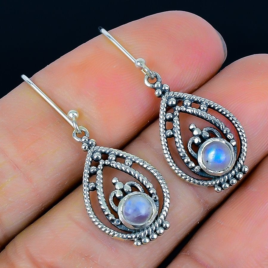 Rainbow Moonstone Gemstone 925 Sterling Silver New Drop Dangle Daughter Earrings