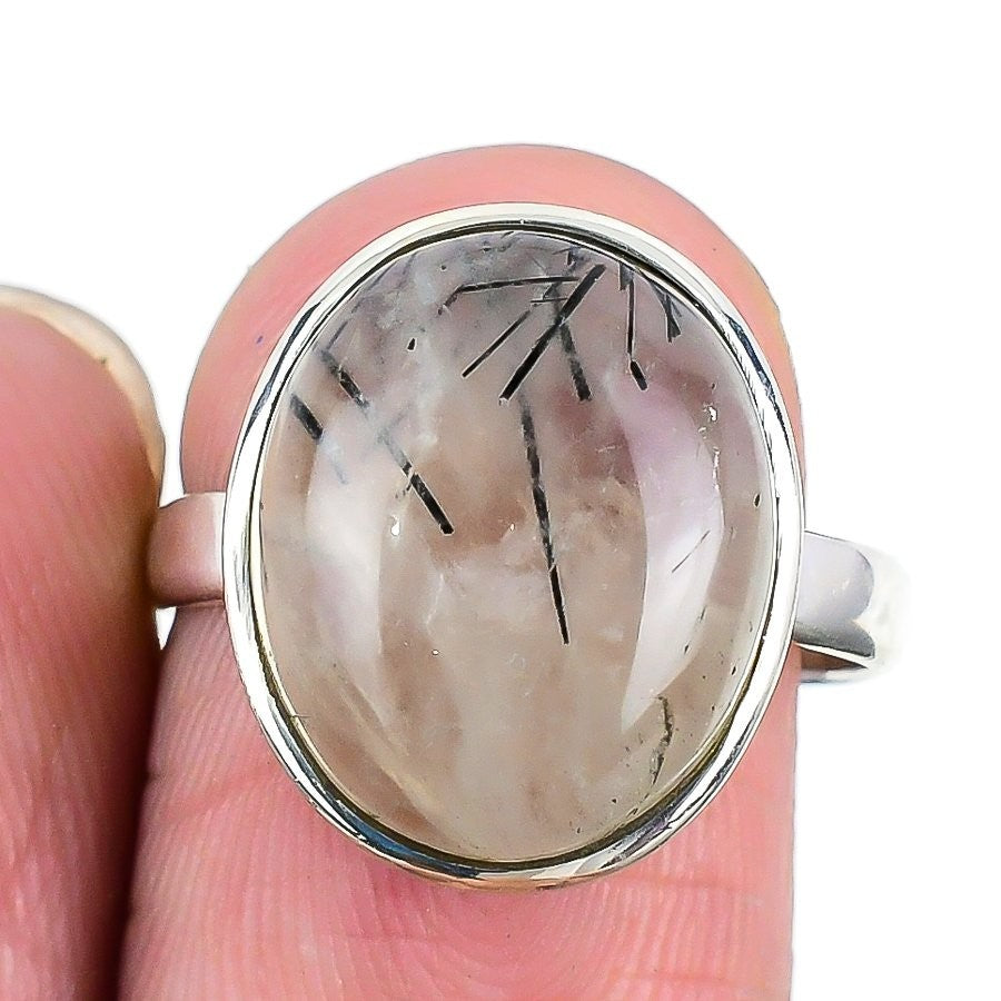 Natural Black Rutile Statement Bezel Sister Ring Jewelry Size 8 925Ā SolidĀ Silver