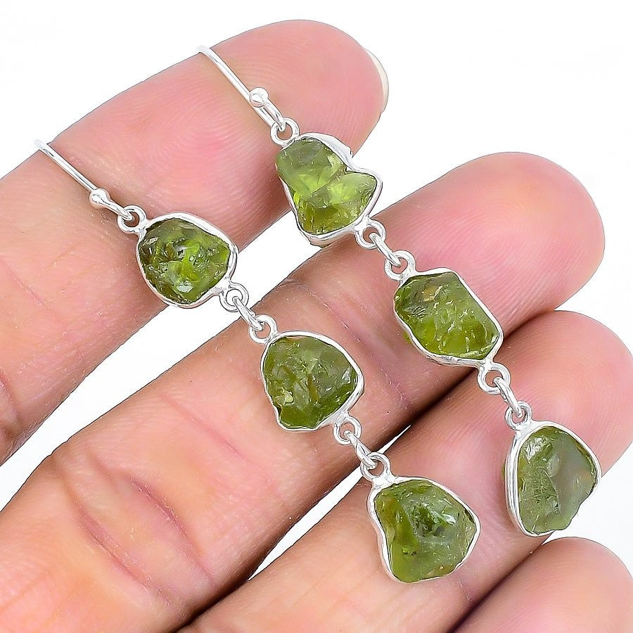 Peridot Druzy Stone 925 Sterling Silver Hook Boho Dangle Daughter Gift Earrings