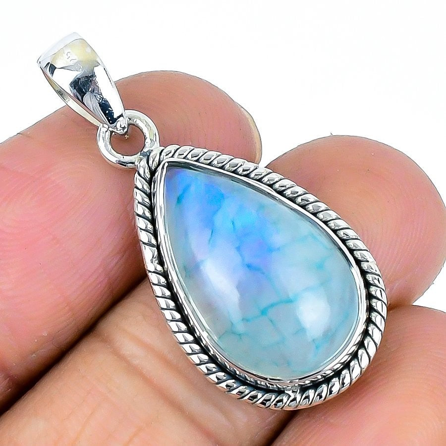 Daughters Day Sale Blue Moonstone Gemstone Pendant Jewelry 925 Sterling Silver