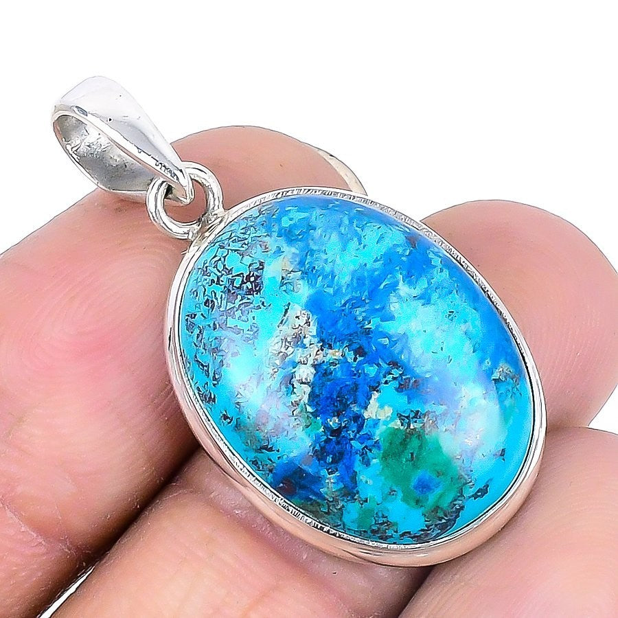 Throat Chakra Chrysocolla Stone Sterling Silver Engagement Wife Pendant Jewelry