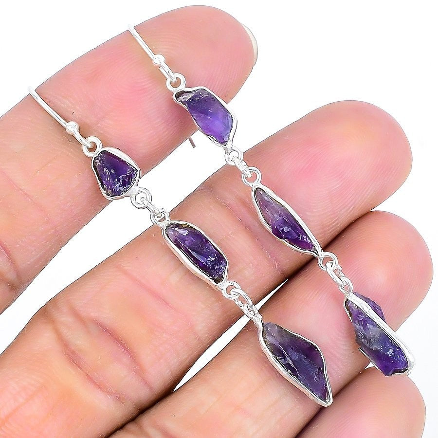 Natural Amethyst Druzy Wife Drop Dangle Birthday Earrings 925 Sterling Silver