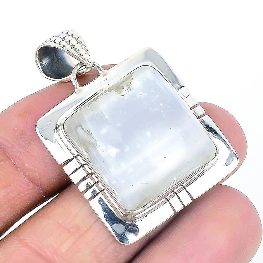 Daughters Day Sale Crown Chakra Natural Selenite Solid Silver Pendant Jewelry