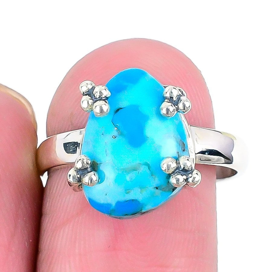 Natural Arizona Turquoise 925 Sterling Silver Trendy Cluster Ring Jewelry Size 8