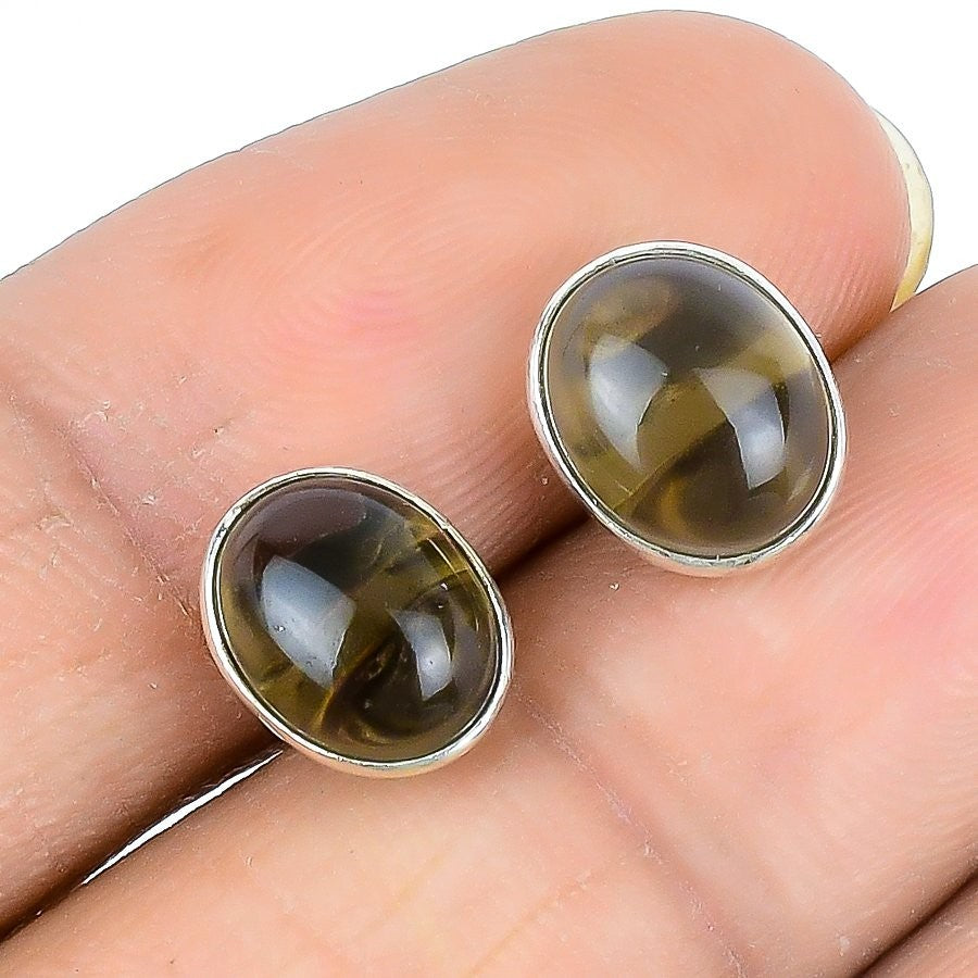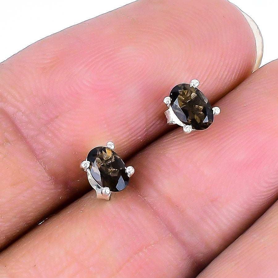 Natural Smoky Topaz Faceted 925 Silver Stud Unique Leverback Earrings Jewelry