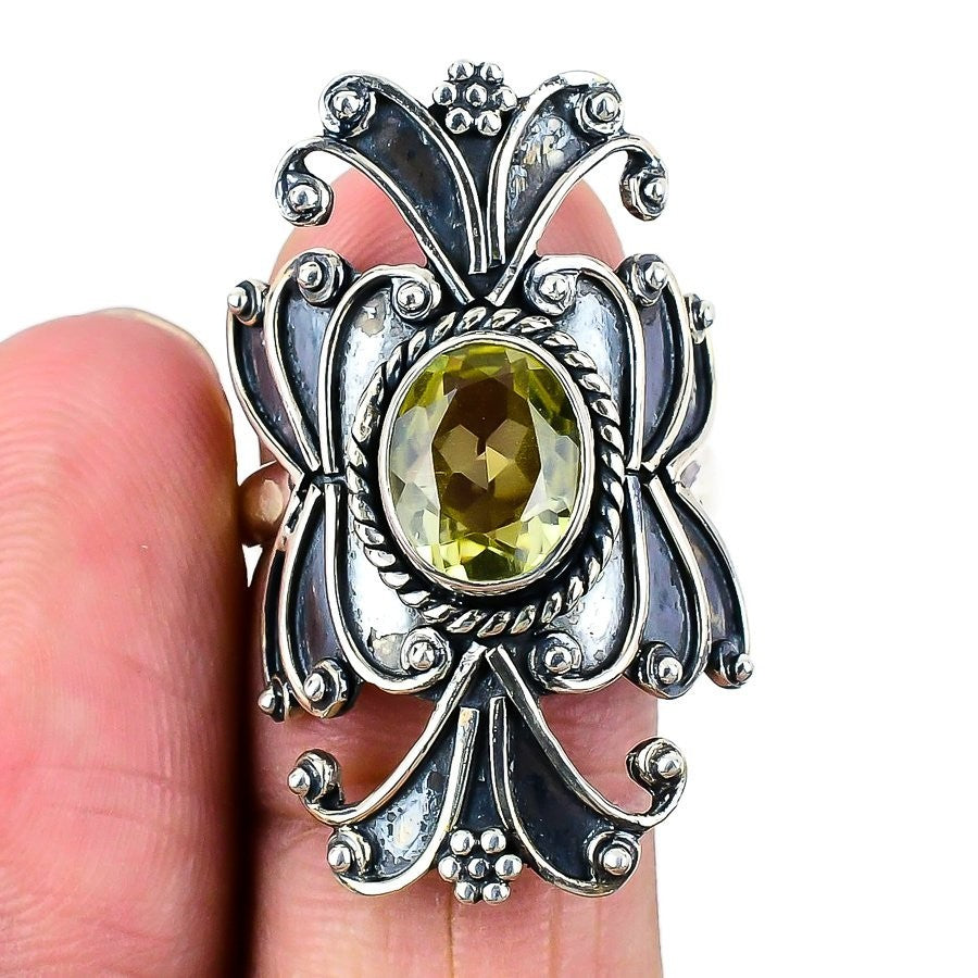 Citrine Stone Sterling Silver Statement Mother Daughter Gift Ring Jewelry US 8.5