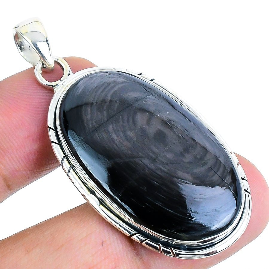 Solar Chakra Hypersthene Obsidian Stone 925Ā SolidĀ Silver Wedding Pendant Jewelry