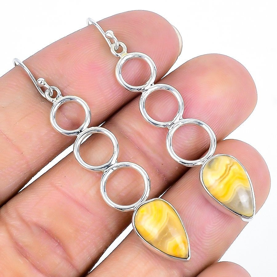 Crazy Lace Agate Gemstone 925Ā SolidĀ Silver Mother Boho Dangle Drop Hook Earrings