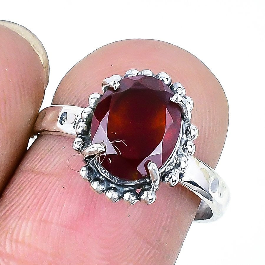 Garnet Faceted Gemstone Wife Elegant Boho Statement Anniversary Ring 925 Silver