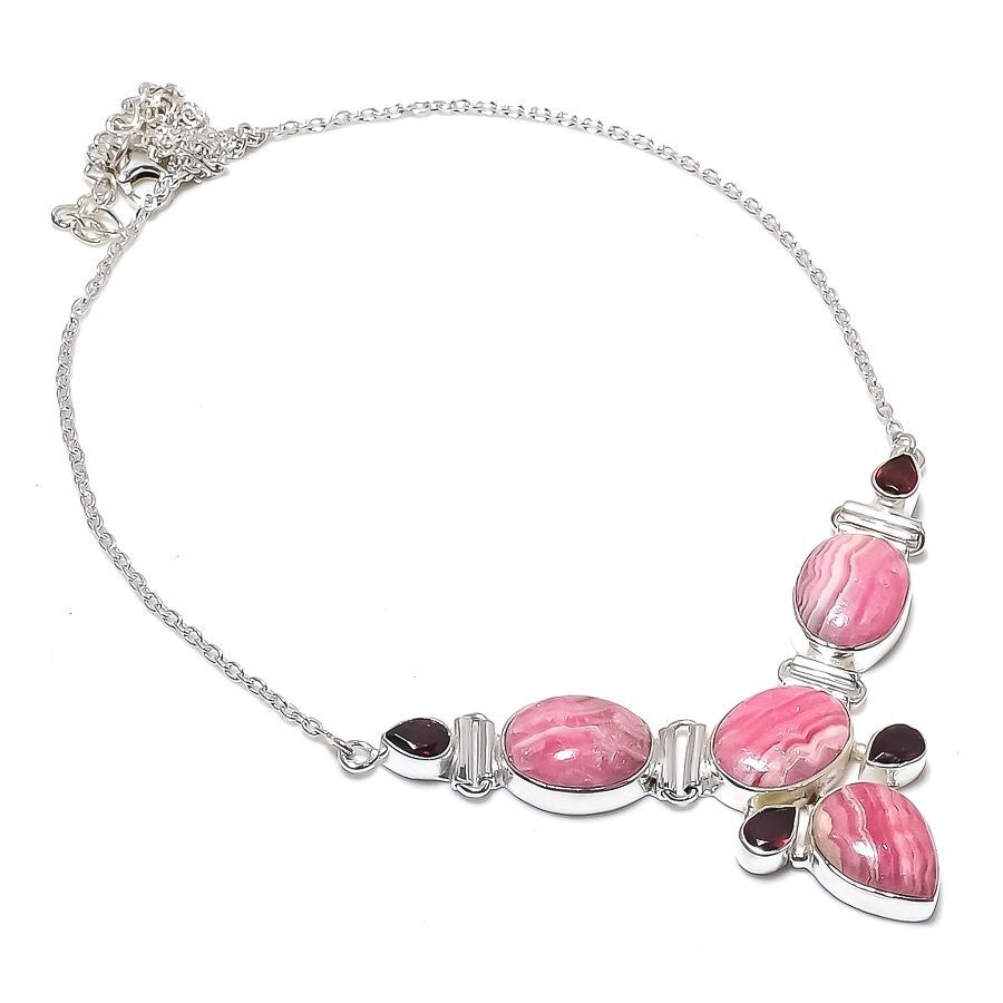 Natural Rhodochrosite Solid Sterling Silver Engagement Chain Necklace Jewelry