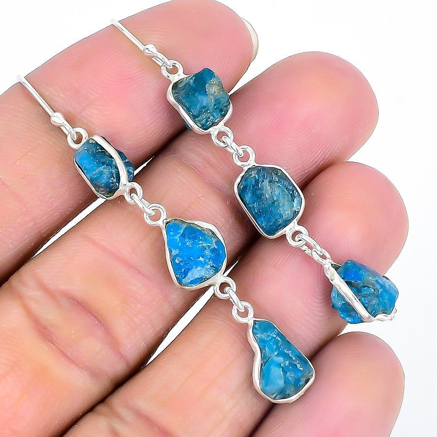 Natural Apatite Druzy 925 Silver Daughter Trendy Hook Dangle Drop Boho Earrings