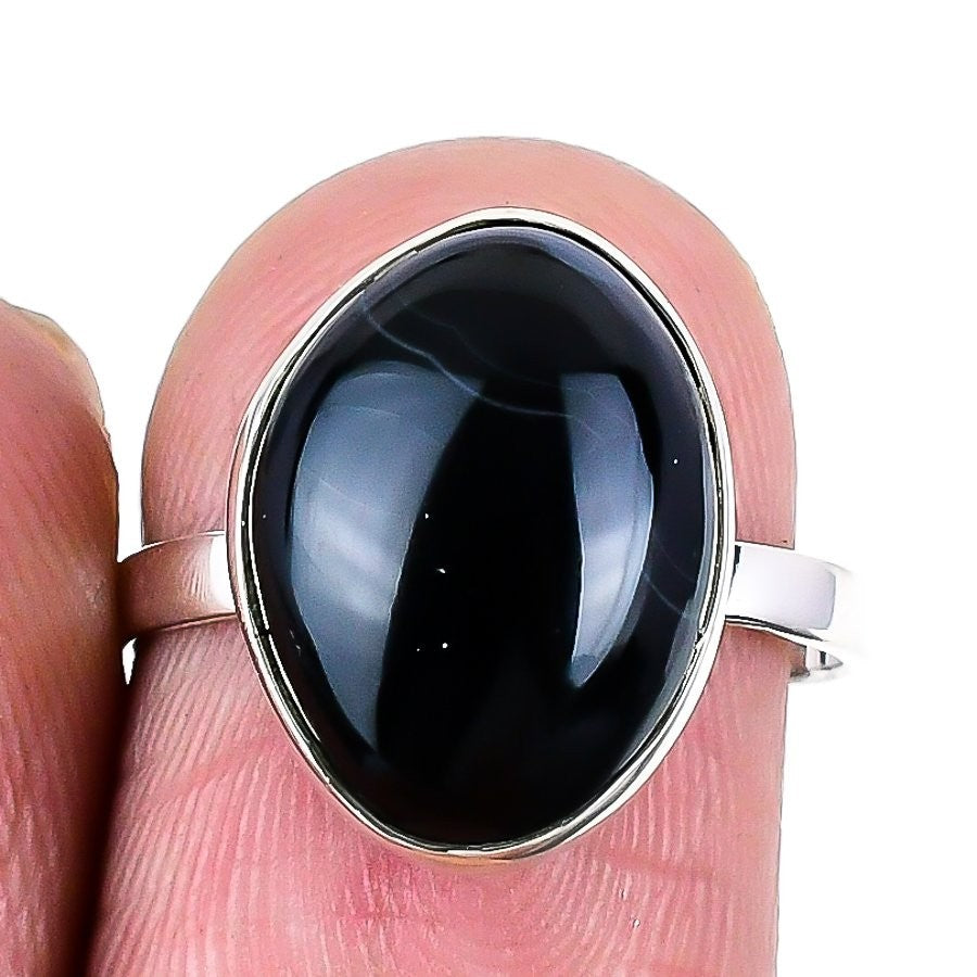 Black Onyx Stone Solid Silver Wedding Statement Mother Root Chakra Ring Jewelry