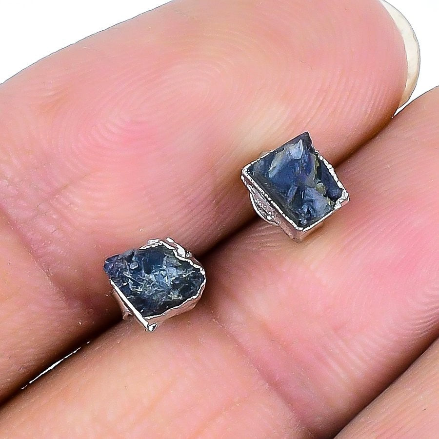 Tanzanite Quartz Druzy Gemstone Stud Sister Elegant Earrings Jewelry 925 Silver