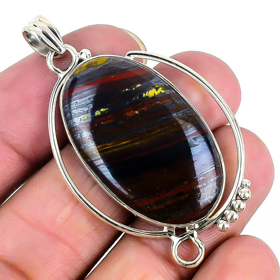 Iron tiger eye Gemstone 925 Sterling Silver Bezel Mother Wedding Pendant Jewelry