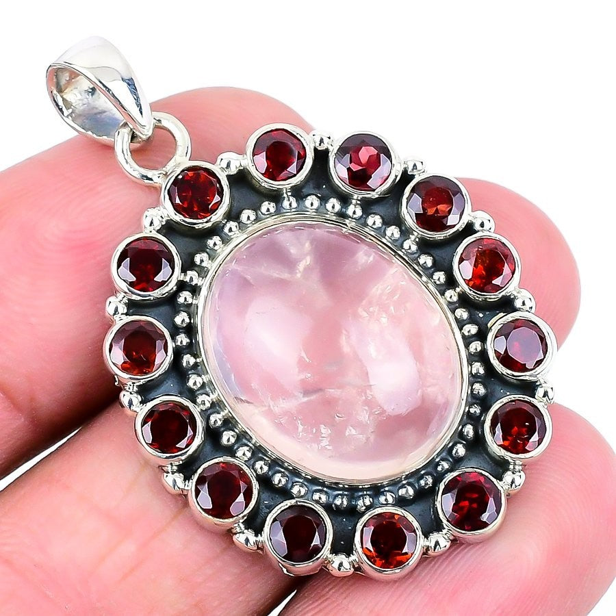 Daughters Day Sale Heart Chakra Rose Quartz Stone Sterling Silver Sister Pendant