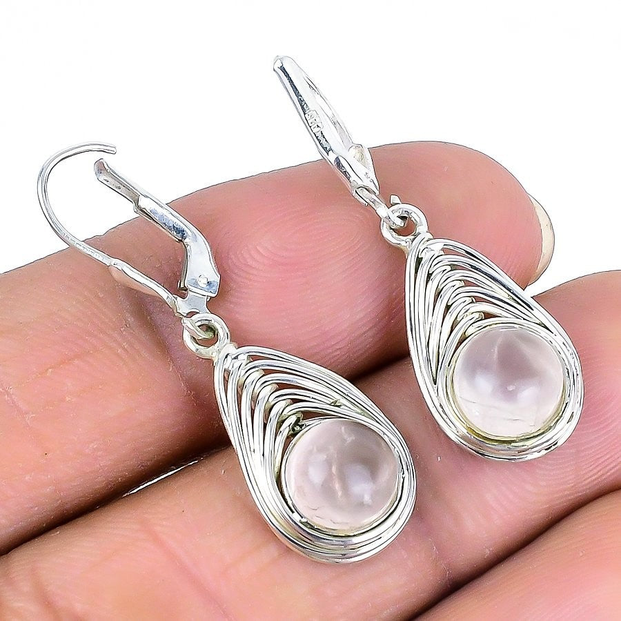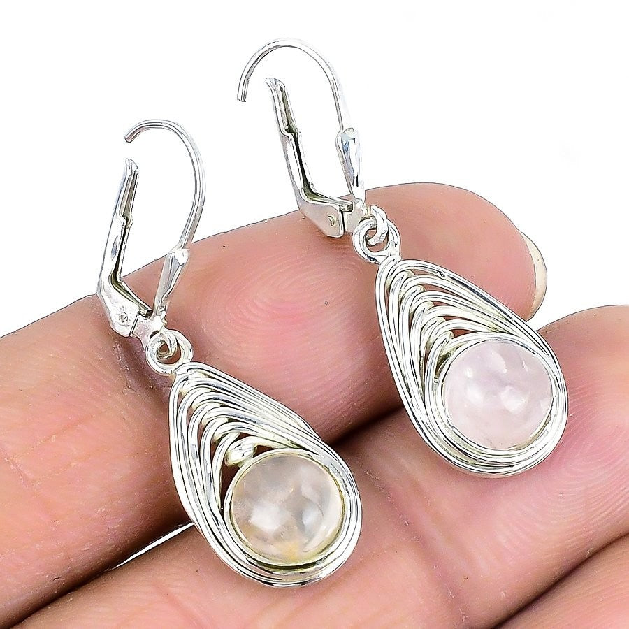 Rose Quartz Stone Solid Sterling Silver Dangling Handmade Ethnic New Earrings