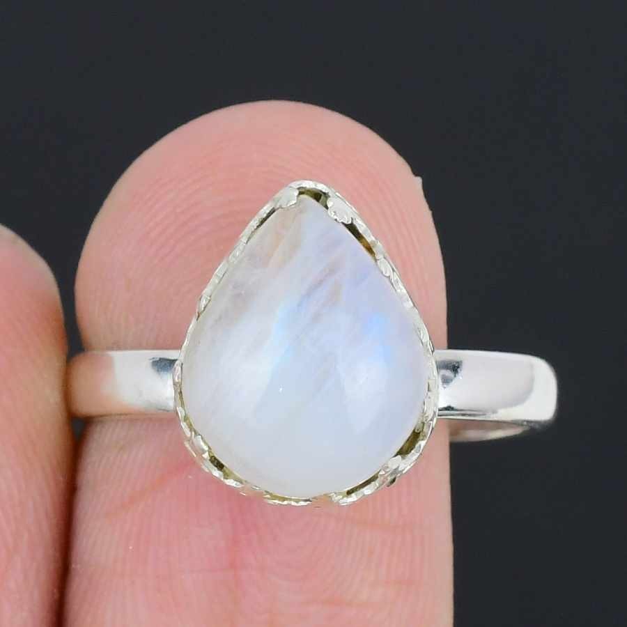 Rainbow Moonstone Gemstone 925 Sterling Silver Cluster Boho Ring Jewelry Size 10