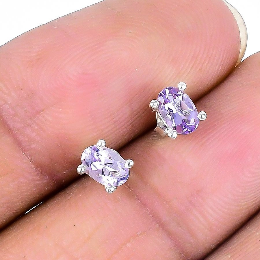 Natural Amethyst 925 Sterling Silver Elegant Birthday Stud Post Earrings Jewelry