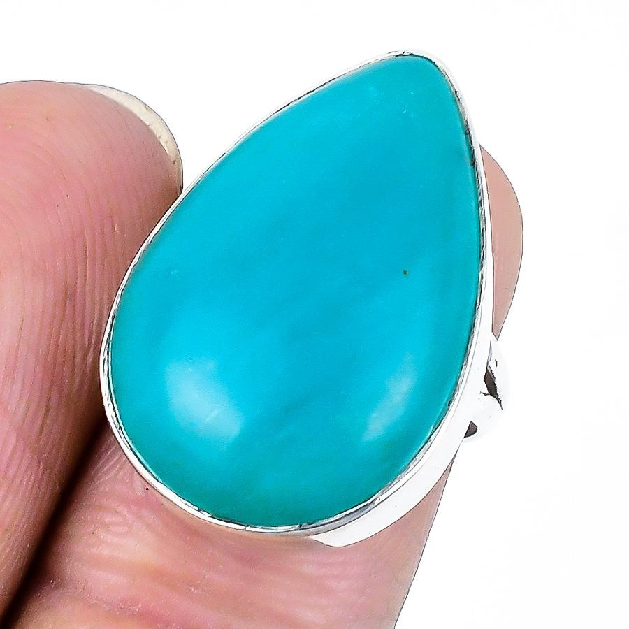 Ammazonite Gemstone Trendy Daughters Day Statement Ethnic Ring 925 Silver US 8.5