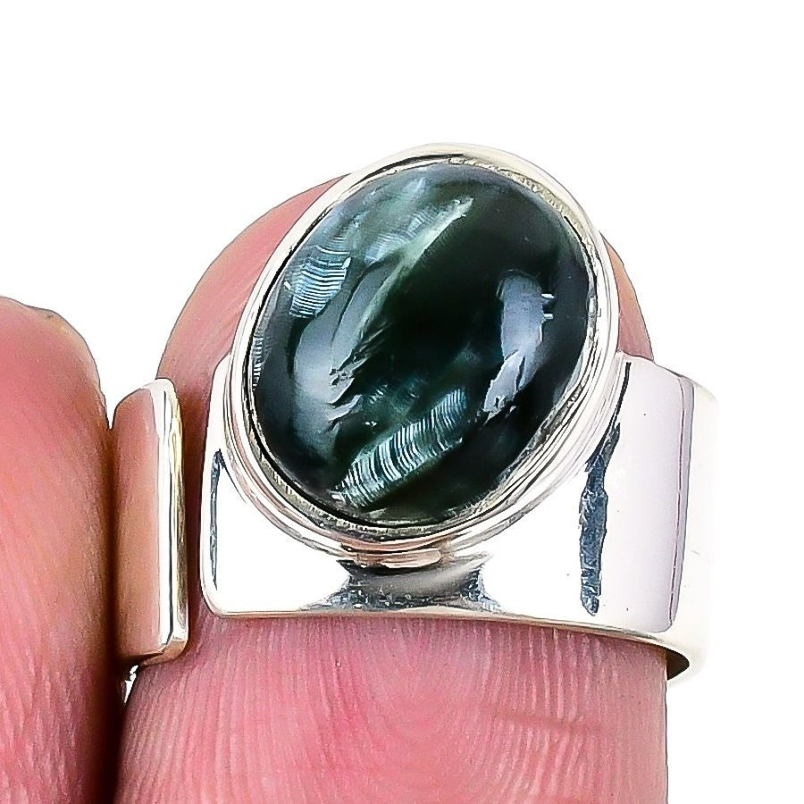 Seraphinite Gemstone Unique Statement Daughters Day Ring Solid Sterling Silver