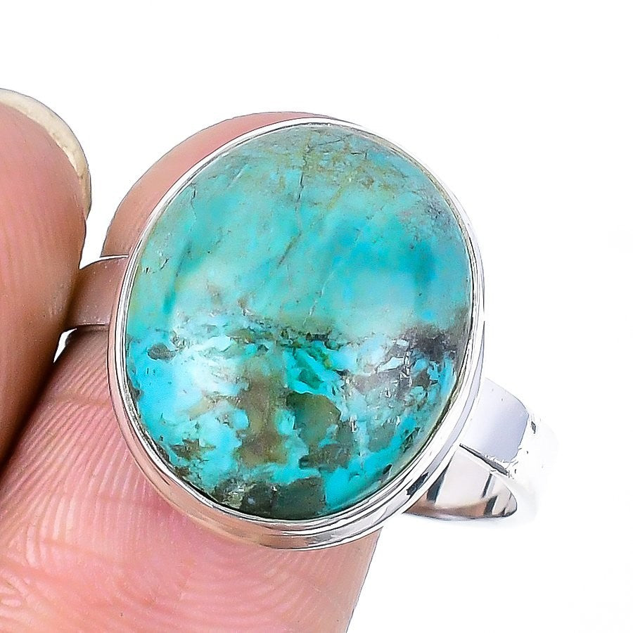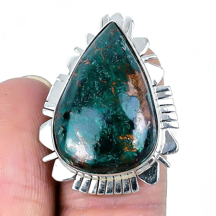 Chrysocolla Stone Art Deco Boho Statement New Ring Jewelry Solid Silver US 12.5