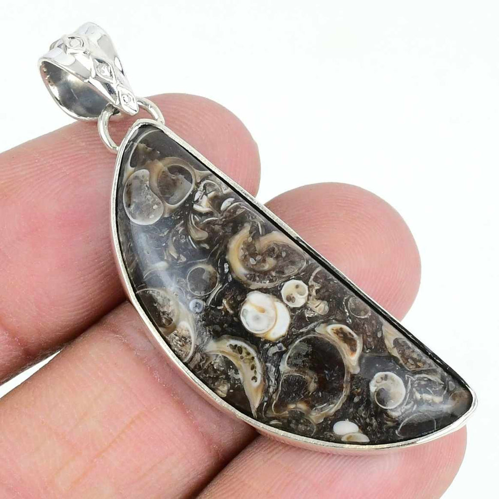 Natural Turtella Fossil Handcrafted Wife Unique Pendant Jewelry 925Ā SolidĀ Silver