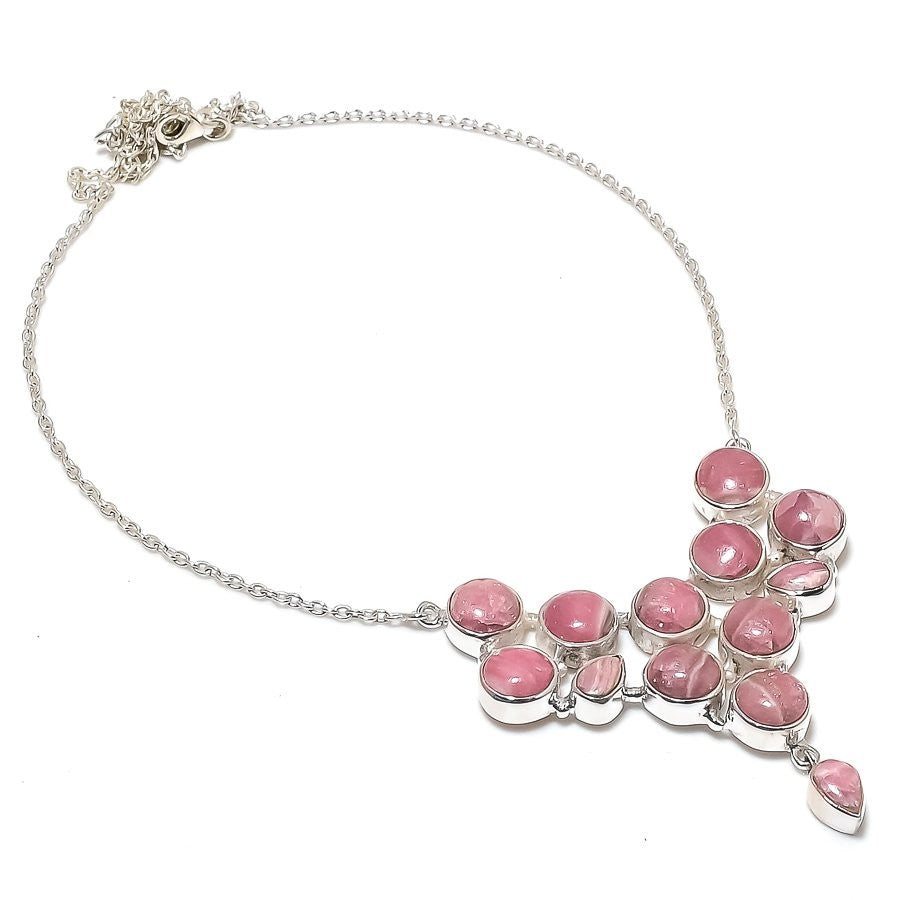 Rhodochrosite Gemstone 925 Sterling Silver Chain Heart Chakra Necklace Jewelry