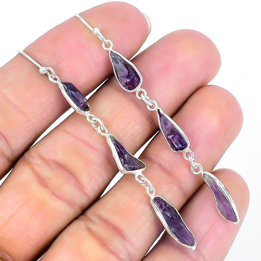 Daughters Day Deal Amethyst Druzy Stone 925Ā SolidĀ Silver Dangle Earrings Jewelry