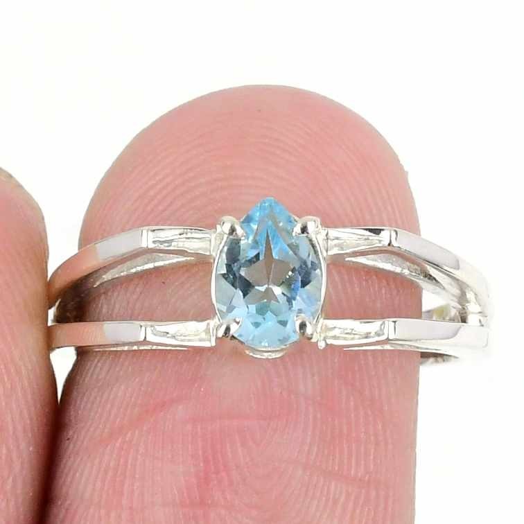 Natural Swiss Blue Topaz Statement Artisan Ring Jewelry 925 Sterling Silver US 6