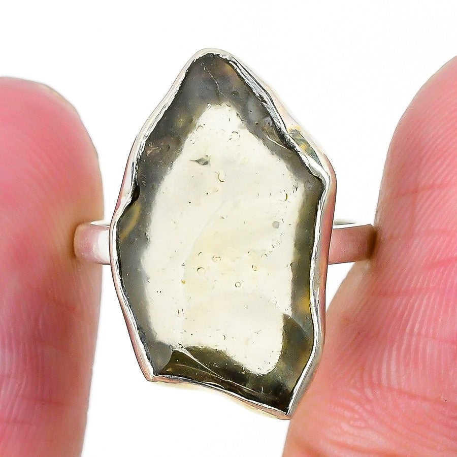 Libyan Glass Gemstone 925Ā SolidĀ Silver Anniversary Cluster Birthday Ring Size 7