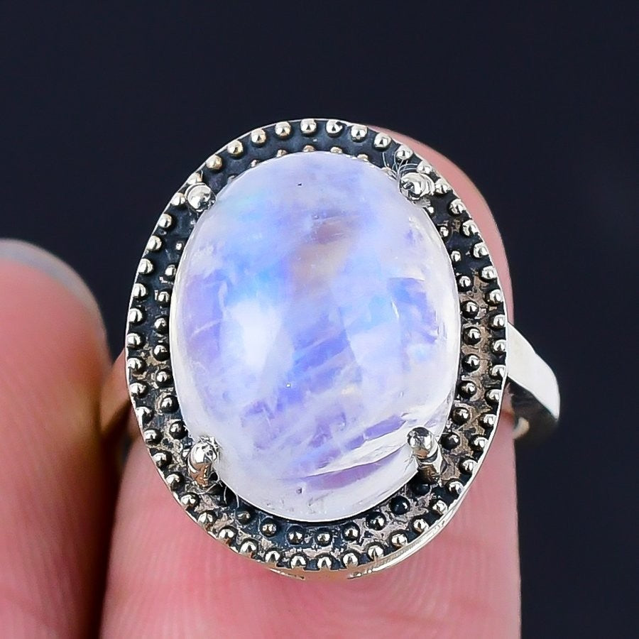 Natural Rainbow Moonstone 925Ā SolidĀ Silver Wife Ethnic Statement Boho Ring US 7