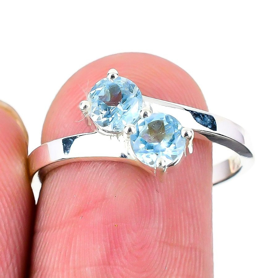 Swiss Blue Topaz Gemstone Sterling Silver Sister Statement Ring Jewelry Size 9