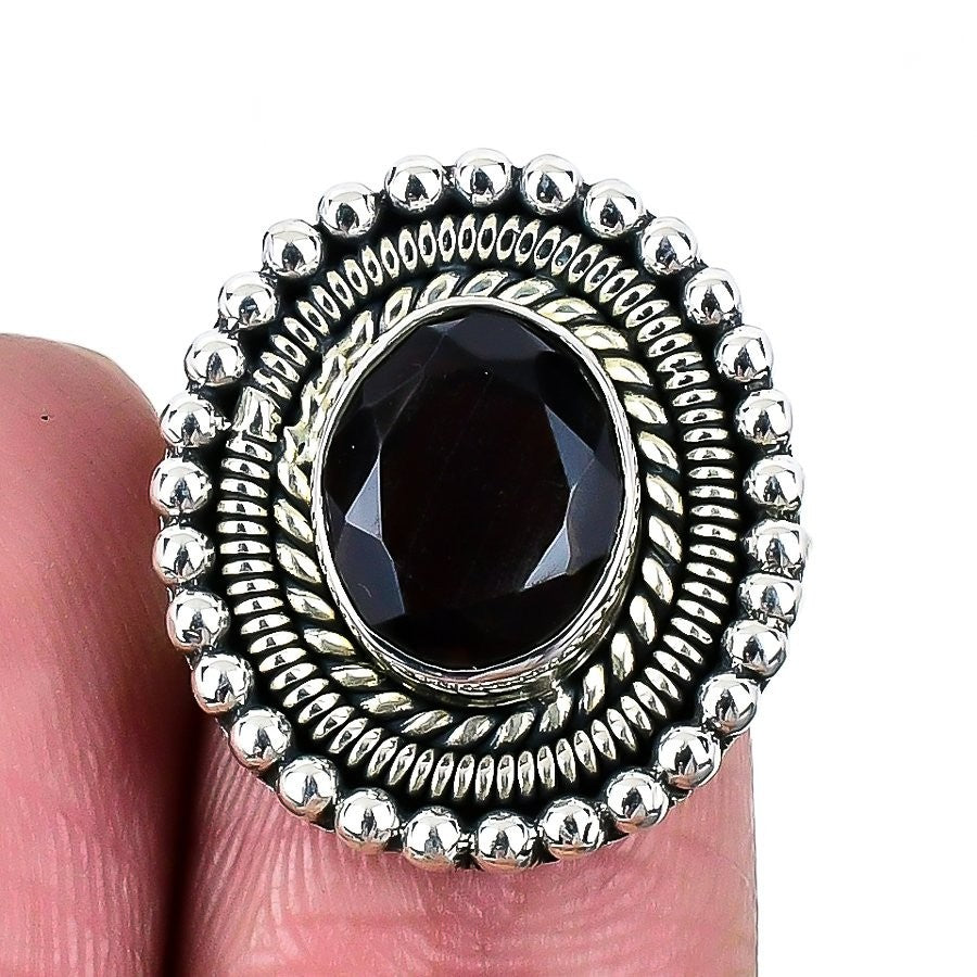Natural Black Spinel Statement Mother Boho Ring Jewelry 925 Solid Silver US 5.5
