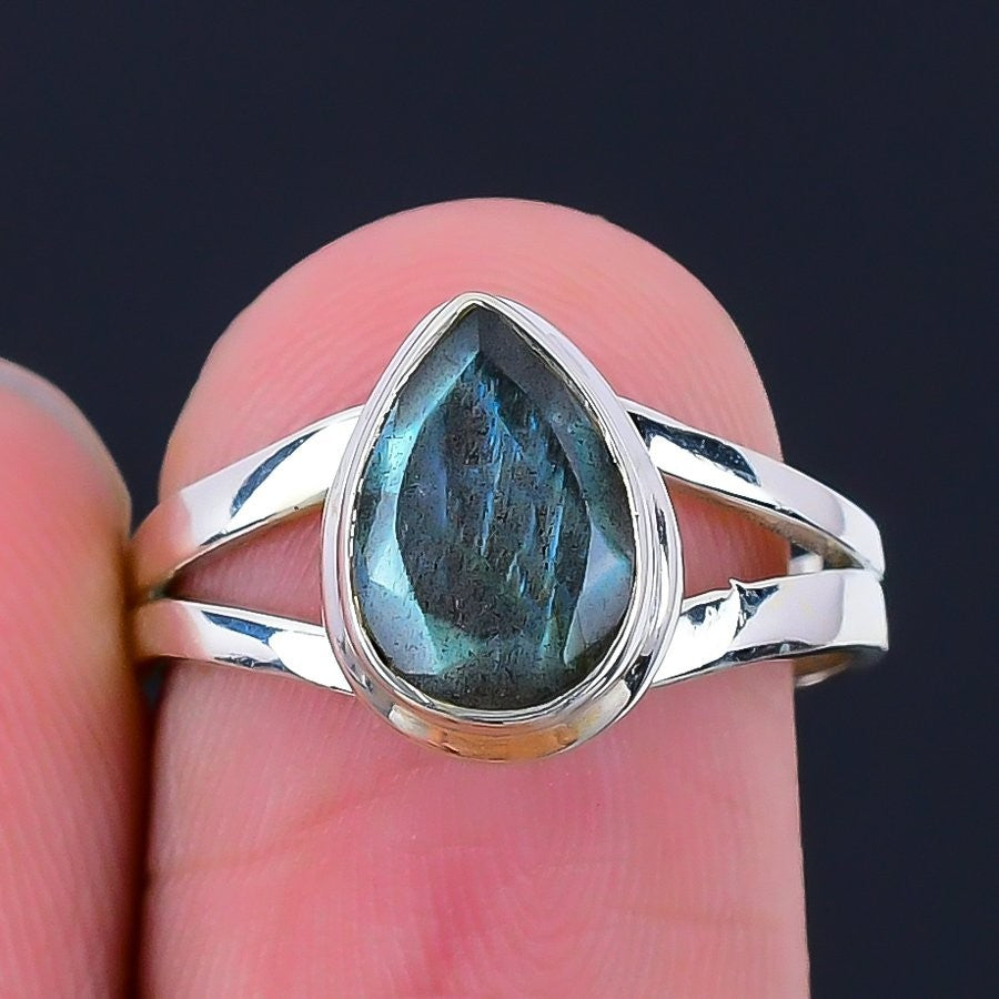 Labradorite Stone Solid Silver Wife Statement Daughters Day Ring Jewelry Size 7