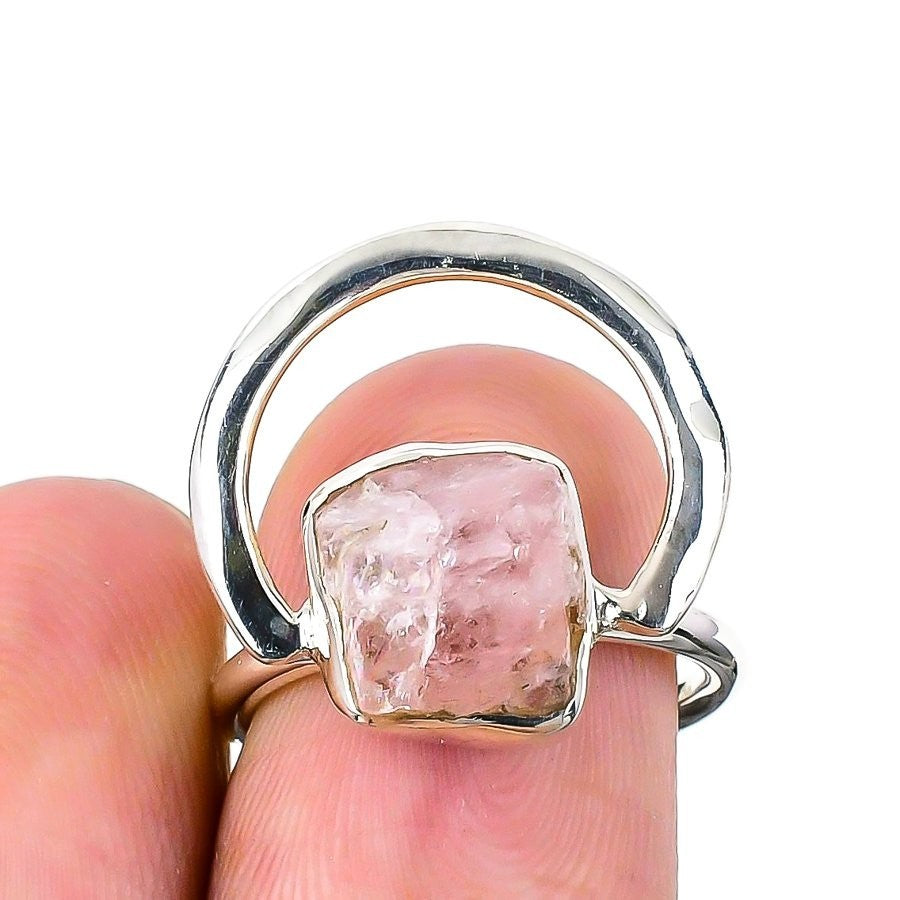Rose Quartz Gemstone Solid Silver Statement Best Daughters Gift Ring Size 6.5