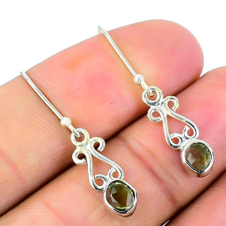 Green Tourmaline Gemstone Sterling Silver Handcrafted Drop Heart Chakra Earrings