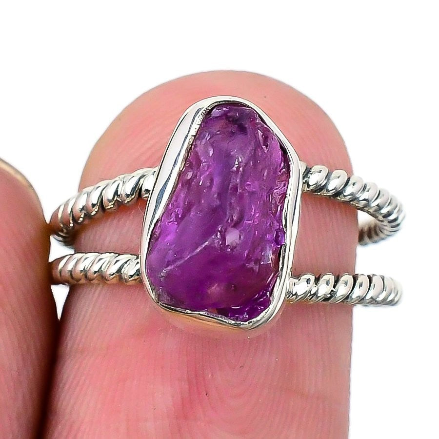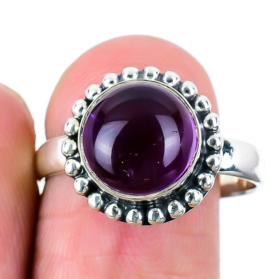 Natural Sage Amethyst Solid Silver Handcrafted Wife Statement Ring Jewelry US 10