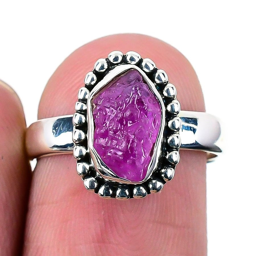 Natural Pink Tourmaline Solid Silver Statement Daughter Boho Ring Jewelry Size 7