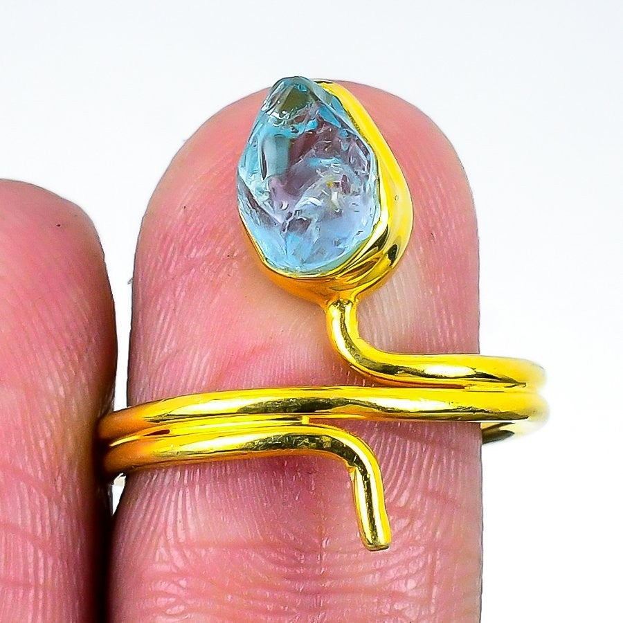 Natural Aquamarine Sterling Silver March Band Mother Promise Ring Jewelry US 9