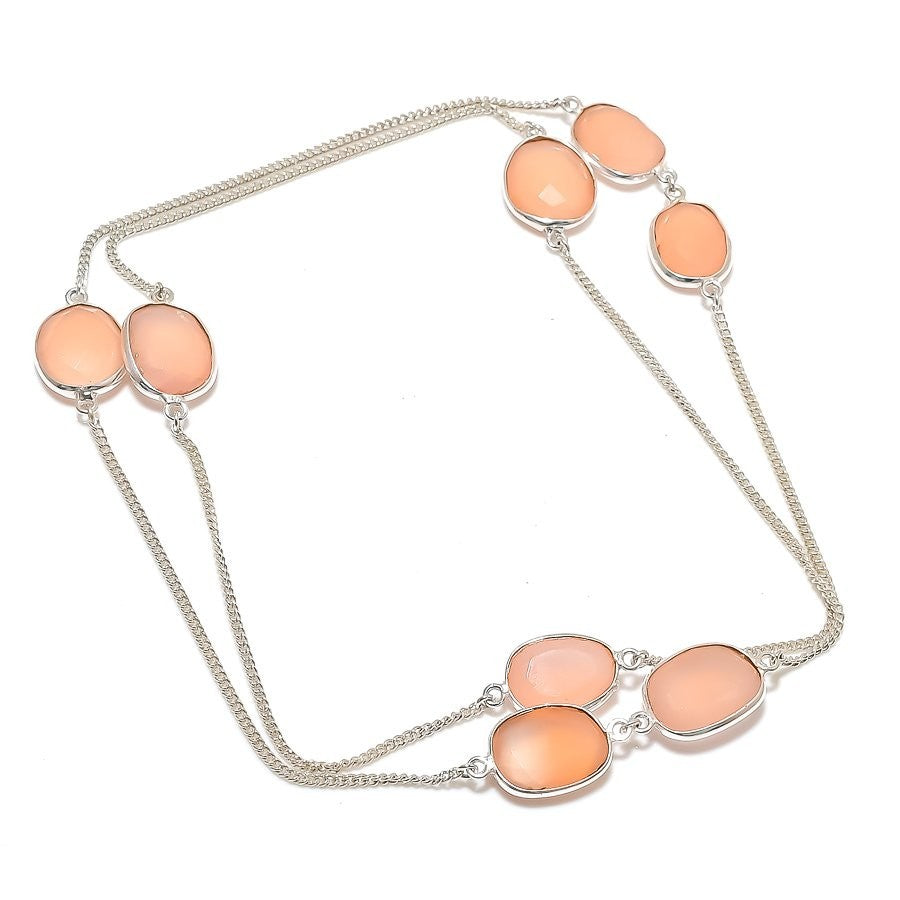 Daughters Day Sale Rose Quartz Stone Solid Silver Chain Wife Necklace Jewelry