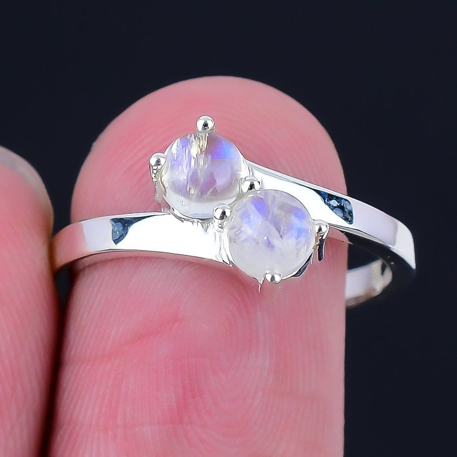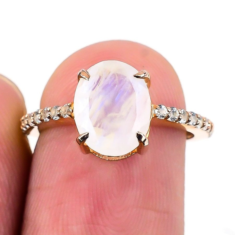 Rainbow Moonstone Stone Statement Best Daughters Gift Ring Sterling Silver US 9