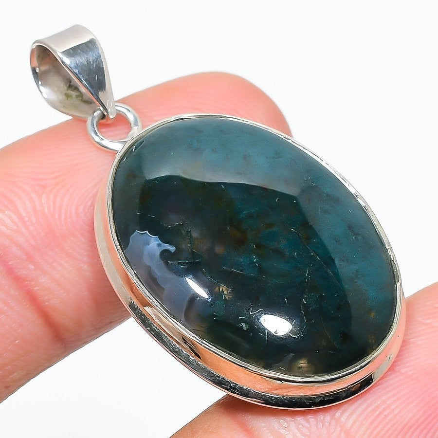 Indian Moss Agate Stone 925 Solid Silver Wife Daughters Day Boho Pendant Jewelry