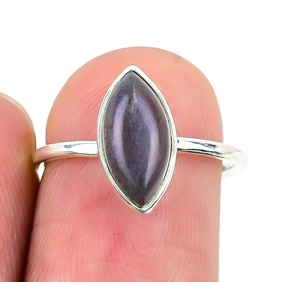 Third Eye Chakra Natural Labradorite Solid Silver Wedding Statement Ring Size 8