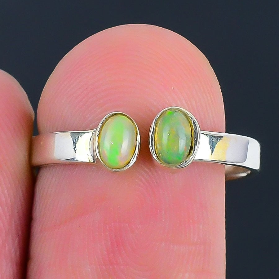 Natural Ethiopian Opal Solid Sterling Silver Mother Stackable Birthday Ring US 8