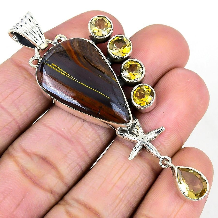 Sacral Chakra Tiger Eye Gemstone Solid Sterling Silver Wedding Pendant Jewelry