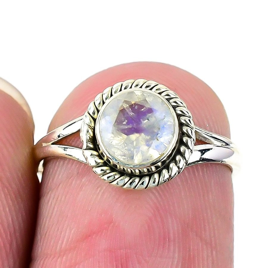 Crown Chakra Natural Rainbow Moonstone Sterling Silver Statement New Ring Size 5