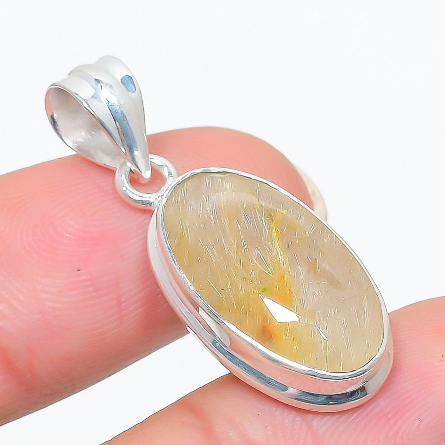 Golden Rutile Gemstone Art Deco Wife Boho Pendant Jewelry Solid Sterling Silver